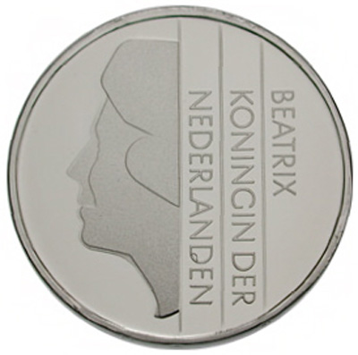 Keerzijde: gekroond Nederlands wapen, daaronder: NEDERLAND - 1 GULDEN