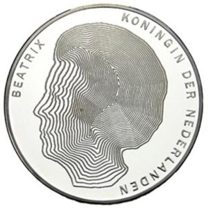 Vz: Portret van Beatrix naar links in tweedimensionaal lijnenpatroon