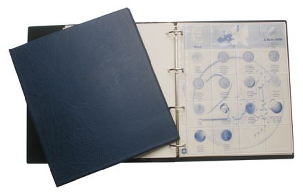 Wordt geleverd met voorgedrukte bladen per jaar en GM insteekbladen voor munthouders.