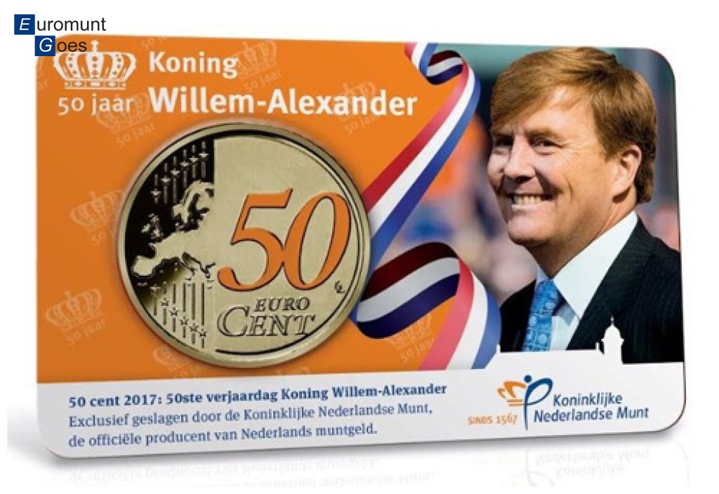 Bevat 50 cent 2017 aan de voorzijde full color en aan de keerzijde deels oranje gekleurd