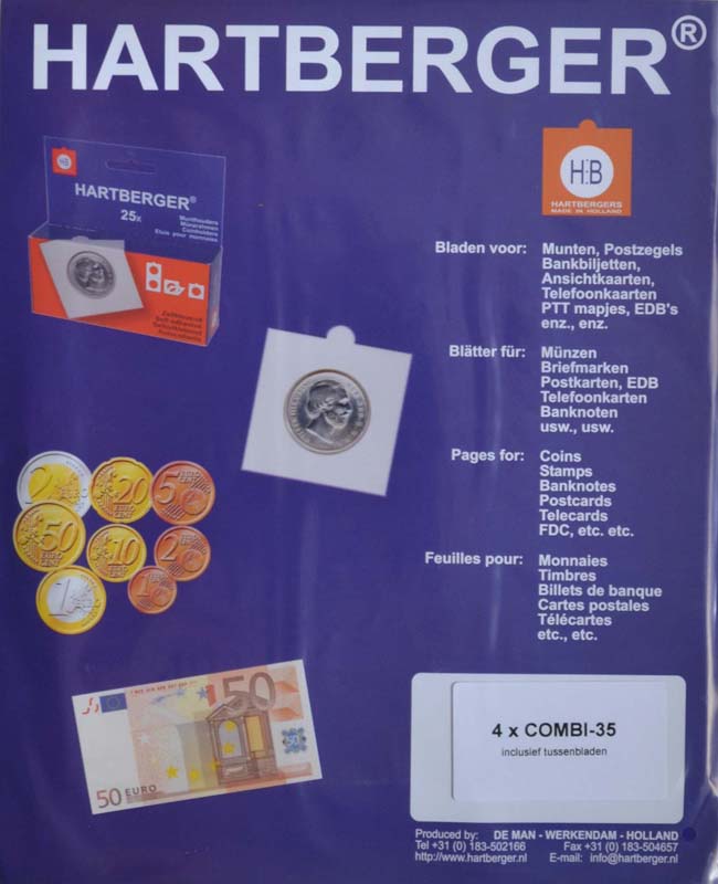 Hartberger Combi-35 bladen 4 stuks voor 35 munten tot 30 mm inclusief 4x Combi-R rode schutbladen.