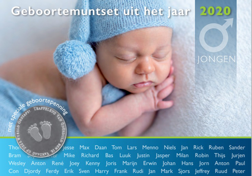 Deze sets bevatten naast de complete serie munten 1 cent tot en met 2 euro ook een penning, waarin een inscriptie gegraveerd kan worden (niet door ons). Bovendien is er aan de binnenkant van de set ruimte voor het vermelden van de naam van de baby, geboortedatum, de naam van de gever, en voor een foto.