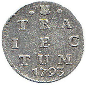 Utrecht Dubbele wapenstuiver 1793 met kabelrand! (product code: utr1793dwst-zf/pr)