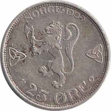 Noorwegen 25 Öre 1909 (product code: noor25Ore1909)