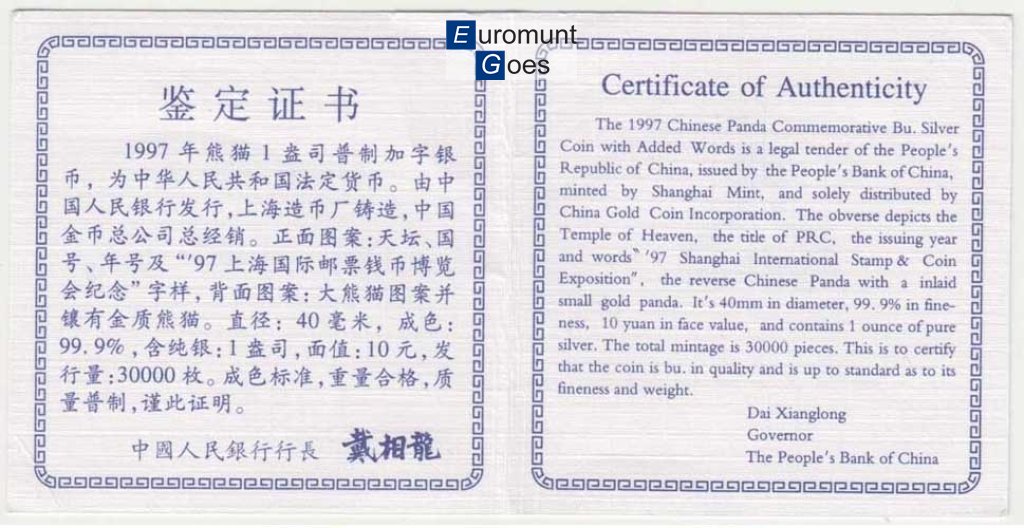 China Panda 1oz 1997 Shanghai Coin Expo. (product code: chi1oz1997Shanghai)