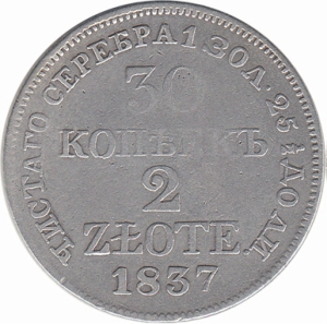 Polen / Rusland 30 Kopeks / 2 Zloty 1837 (product code: Rus1837)