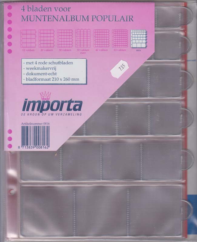 Importa 4 bladen voor het muntenalbum Populair Mix (30 vakken).
