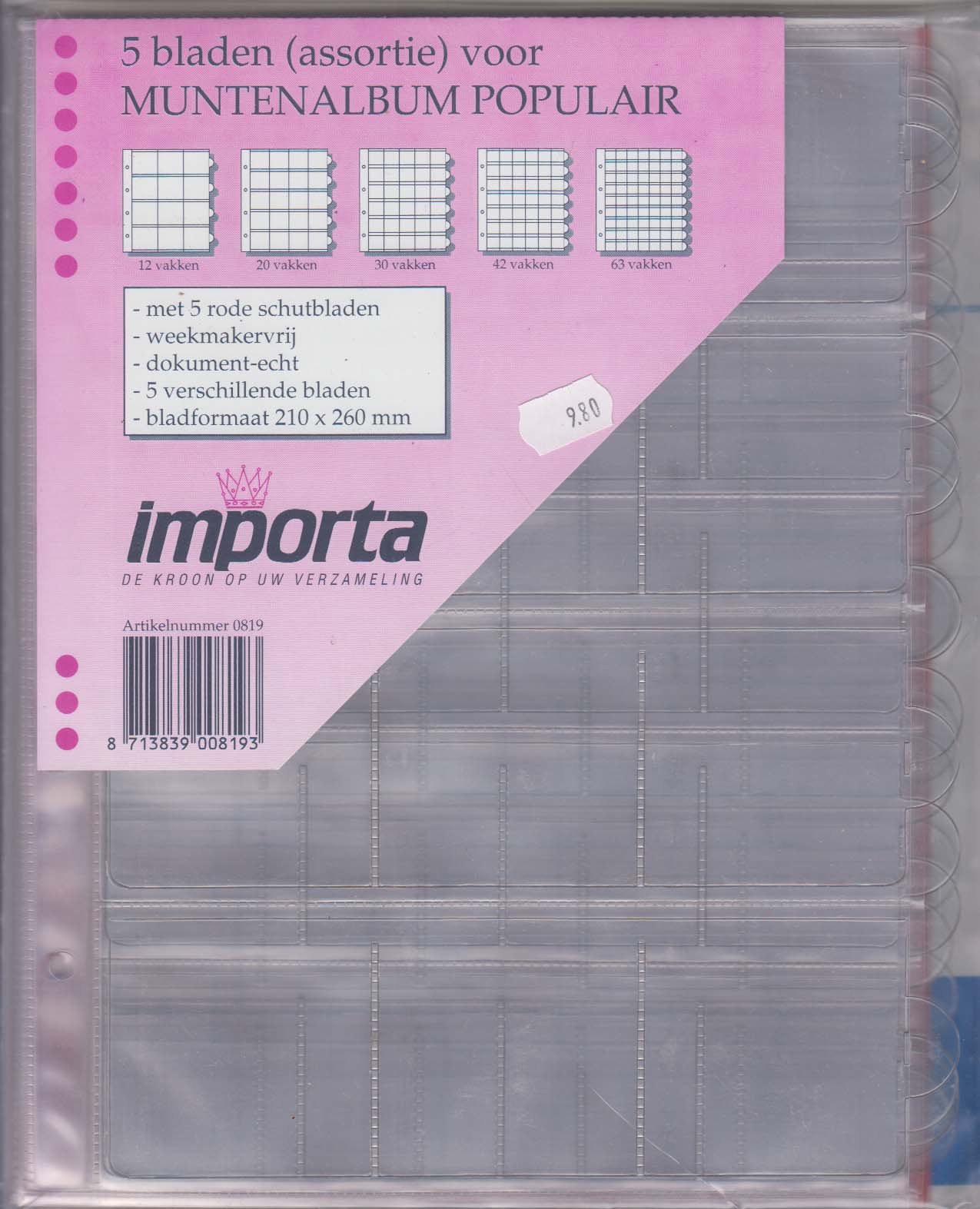 Importa 5 bladen voor het muntenalbum Populair assortie.