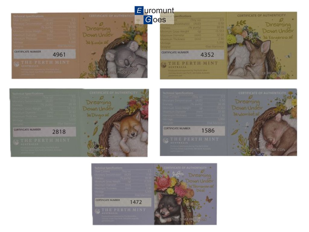 Australië 5x ½ Dollar 2021 Dreaming Down Under (product code: AusDream-Down-Under-Set)