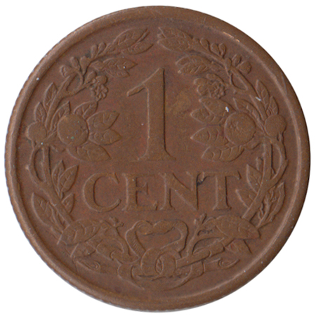 Kz.: 1 Cent binnen twee samengebonden oranjetakken