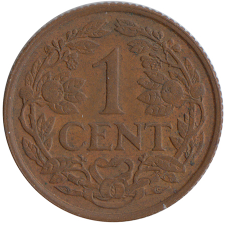 Kz.: 1 Cent binnen twee samengebonden oranjetakken