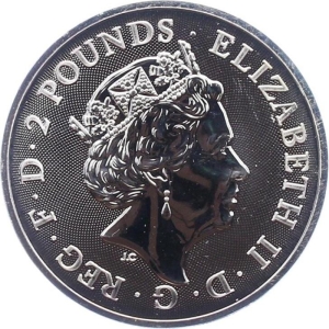 Deze munt is afkomstig van een serie zilveren munten ter ere van de heraldische dieren van Groot-Brittannië.