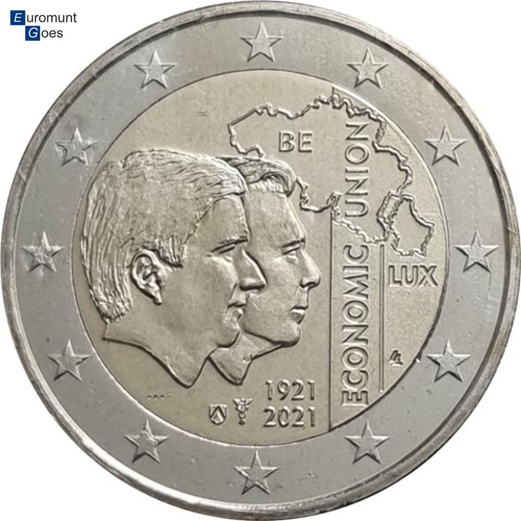 Beschrijving van het ontwerp: op de nationale zijde van de munt worden de beeltenis van de Belgische koning Filip I en die van groothertog Henri van Luxemburg afgebeeld. Daarnaast worden beide landen afgebeeld, met de vermelding “ECONOMIC UNION”, en de jaren 1921 en 2021. Aangezien de Koninklijke Nederlandse Munt de munt zal slaan, bevindt zich onderaan het muntteken van Utrecht, een mercuriusstaf, samen met het Belgische muntmeesterteken, het wapen van de gemeente Herzele. Op de munt staan ook de initialen LL, een verwijzing naar de ontwerper van de munt, de heer Luc Luycx. Langs de buitenrand van de munt zijn de twaalf sterren van de Europese vlag afgebeeld.