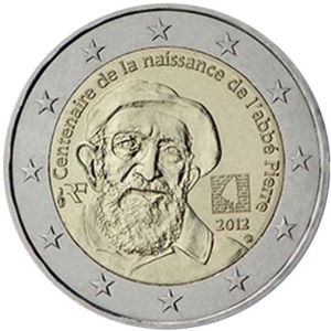 Beschrijving van het ontwerp: het binnenste gedeelte van de munt toont, iets uit het midden naar links, een portret van Abbé Pierre met zijn bekende muts, en aan de rechterzijde het logo van de stichting die zijn naam draagt, met daarin in microtekst de vraag "Et les autres?", zijn favoriete woorden die ons eraan moeten herinneren dat wij nooit moeten vergeten anderen te helpen. De inscriptie “Centenaire de la naissance de l’abbé Pierre” vormt langs de rand van het binnenste gedeelte van de munt een boog rond het portret, aan de linkerzijde geflankeerd door de hoorn des overvloeds (het muntteken van de Monnaie de Paris) en de letters “RF” ter aanduiding van het land van uitgifte, en aan de rechterzijde door de “fleurette” (het merkteken van de graveurs). Langs de buitenrand van de munt zijn de twaalf sterren van de Europese Unie afgebeeld.
