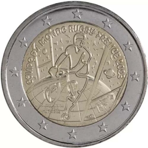 Beschrijving van het ontwerp: Ter gelegenheid van het wereldkampioenschap rugby dat in Frankrijk wordt gehouden, eert de Monnaie de Paris de rugbysport en dit kampioenschap waaraan teams uit twintig landen deelnemen. Op de munt staat een gestileerde rugbyspeler die een pass geeft. De wereldbol op de achtergrond stelt het rugbyveld voor waarop de doelpalen staan en maakt deel uit van een denkbeeldig rugbysterrenstelsel waarin de andere planeten ovaal zijn. Het embleem van het kampioenschap is links van de speler afgebeeld en de naam van het evenement staat bovenaan in een halve cirkel. De aanduiding van het land van uitgifte “RF”, het muntteken en het muntmeesterteken staan rechts onder de afbeelding. De naam van het kampioenschap, het land van uitgifte “FRANCE” en het jaartal “2023” staan linksonder. De naam van het kampioenschap (bovenaan in een halve cirkel) en de vermelding “RF” zijn weergegeven in het officiële lettertype van het evenement, namelijk Mobius. Langs de buitenrand van de munt zijn de twaalf sterren van de Europese vlag afgebeeld.