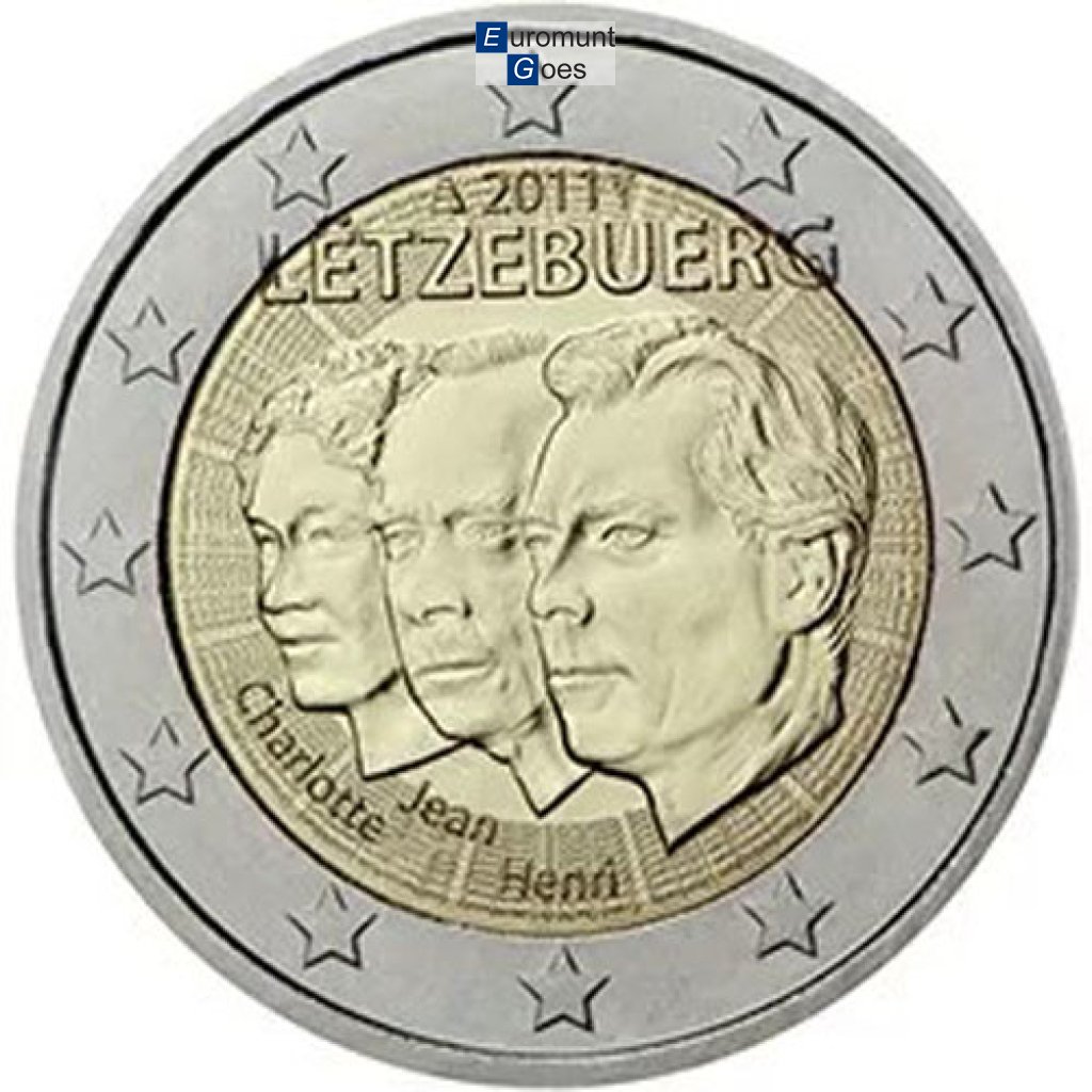 Beschrijving van het ontwerp: aan de rechterzijde van het binnenste gedeelte toont de munt het naar links kijkende portret van Zijne Koninklijke Hoogheid groothertog Henri, geplaatst vóór de portretten van groothertog Jean en groothertogin Charlotte. Boven de drie portretten staat het woord "LËTZEBUERG", en daarboven, tussen het muntteken en het teken van de Muntmeester, het jaar: "2011". Onder ieder portret staat de naam van de desbetreffende Koninklijke Hoogheid vermeld. Langs de buitenrand van de munt zijn de twaalf sterren van de Europese Unie afgebeeld.