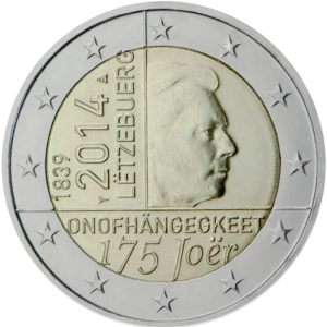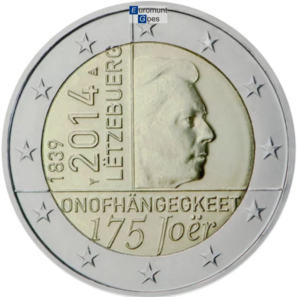 Beschrijving van het ontwerp: in het binnenste gedeelte van de munt is rechts het gelaat van Zijne Koninklijke Hoogheid groothertog Henri, naar rechts kijkend, afgebeeld, terwijl links, in verticale richting, de jaren „1839” en „2014” en de naam van het uitgevende land „LËTZEBUERG” zijn vermeld. Onderaan in het binnenste gedeelte van de munt staan de opschriften „ONOFHÄNGEGKEET” en „175 Joër”. Langs de buitenrand van de munt zijn de twaalf sterren van de Europese Unie afgebeeld.